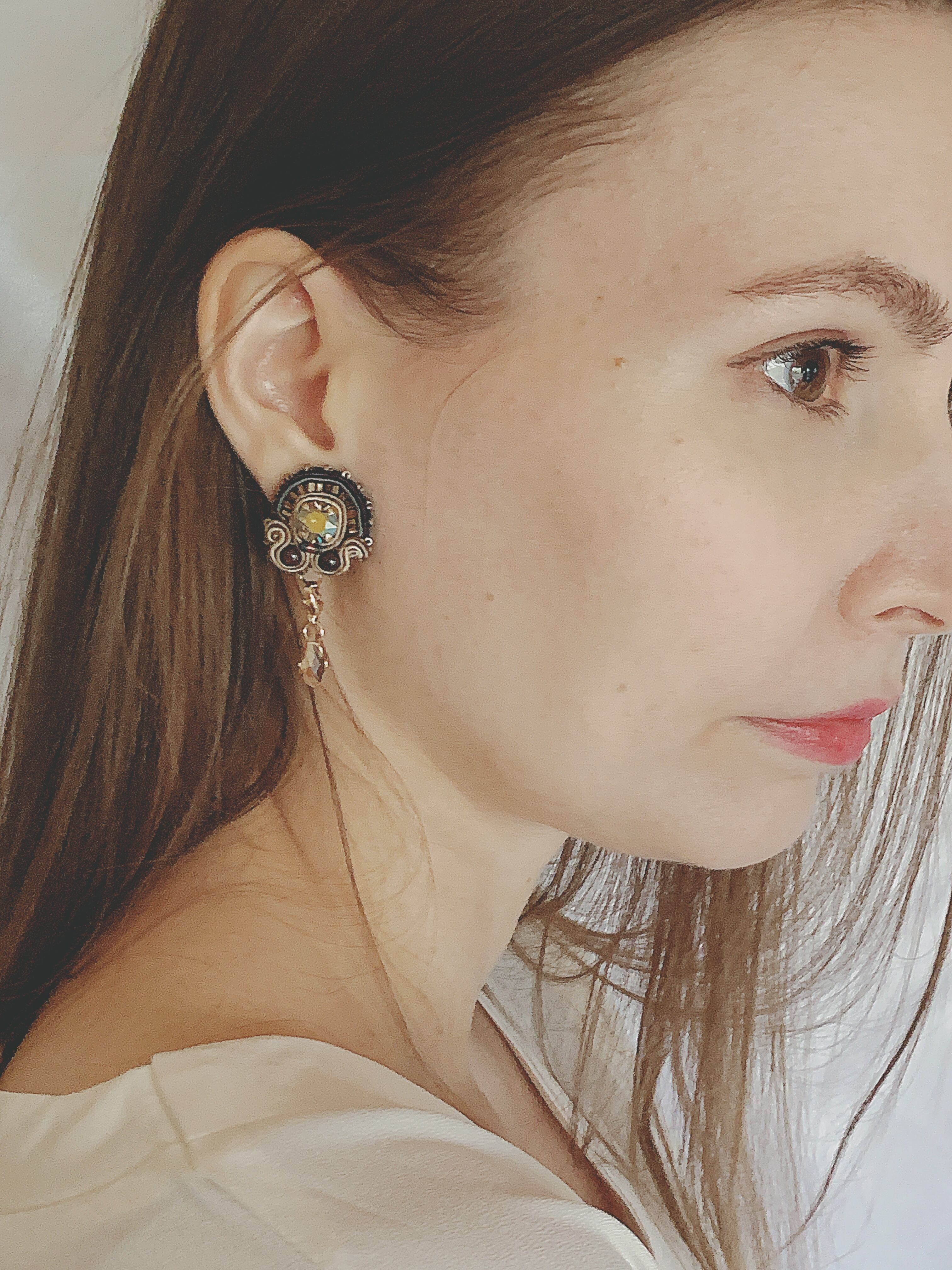 ガーネットなどの刺繍 イヤリングからピアスへ金具交換はコメントを添えてください ラインストーン取り外しアレンジできます